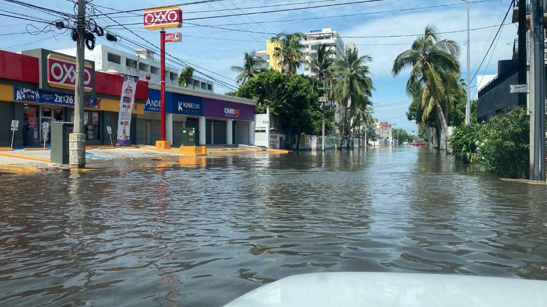 Permanece inundada la Cruz Lizárraga tras lluvia de este domingo en Mazatlán