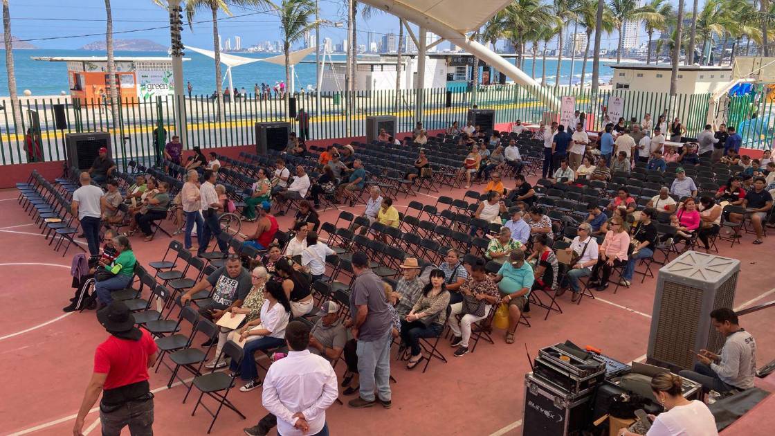 Ante esta situación, cerca de 200 beneficiarios procedentes de distintas comunidades de la zona rural de Mazatlán que llegaron a la hora original, tuvieron que permanecer en el lugar hasta el inicio del acto oficial, pues para ellos resulta más complicado el traslado de regreso para el nuevo horario.