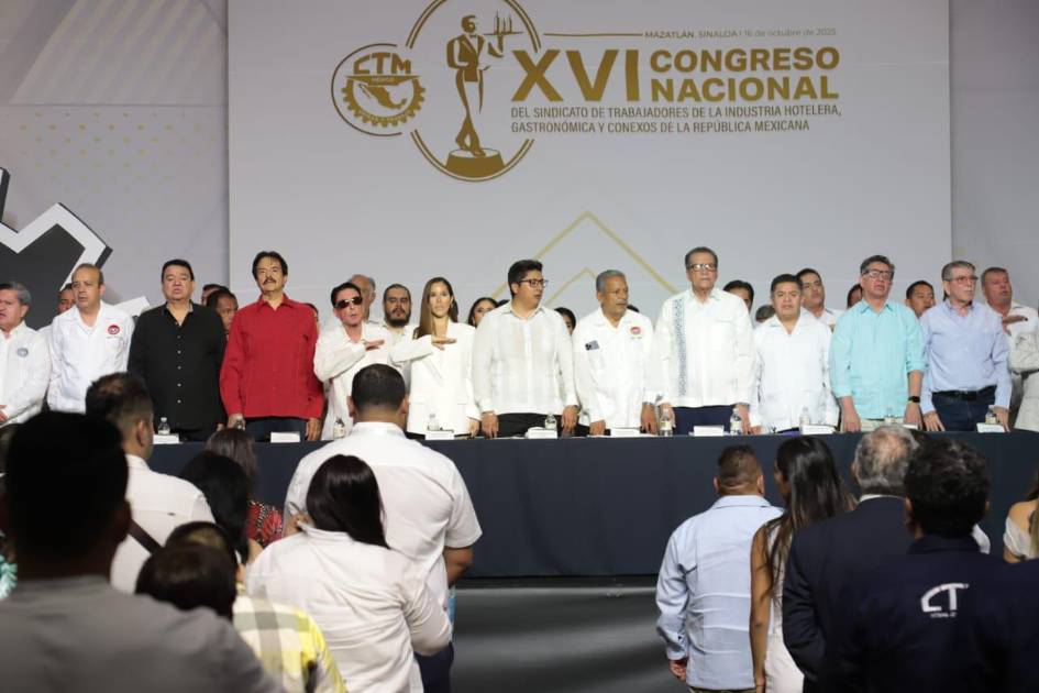 En representación del Gobernador de Sinaloa, Rubén Rocha Moya, llegó Castro Melendrez para inaugurar los trabajos del Congreso Ordinario del Sindicato Nacional de Trabajadores de la Industria Gastronómica y Hotelera.