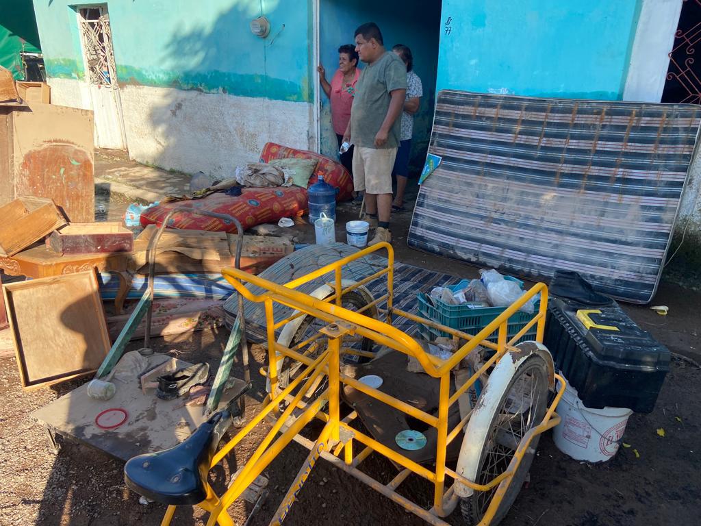 Vecinos de comunidades de El Rosario pidieron apoyo a las autoridades de despensas, escobas para barrer, para adquirir nuevamente los electrodomésticos que se les echaron a perder en las inundaciones, ropa, así como por las afectaciones en los cultivos y la ganadería.