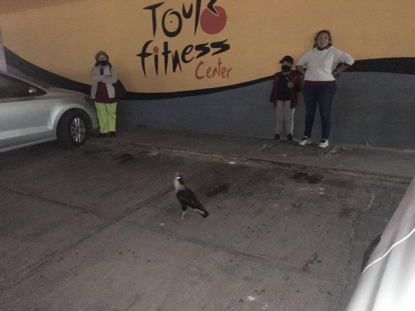 El ave se encuentra en el estacionamiento de un gimnasio de la calle Avenida de las Rosas, entre Ejército Mexicano y Río Humaya, en el Fraccionamiento Brisas del Mar