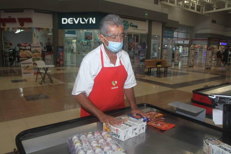 Ramón Peraza, de 68 años, quien ha sido paquetero de tiendas Soriana por más de siete años, explicó que él se siente muy feliz por haber regresado a trabajar en cajas, pues la actividad que realiza por cuatro horas en un día, hace que se distraiga y además lleve un ingreso económico a su casa.