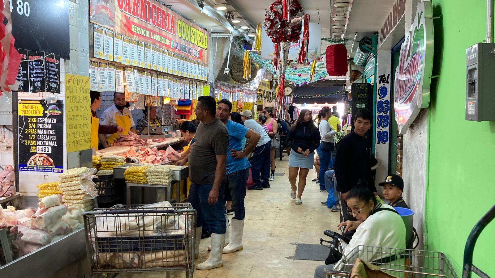 El encargado de las finanzas en el Mercado de la Juárez explicó que los locatarios que comercian con alimentos fueron los más afortunados por el repunte de afluencia de personas durante los días 23 y 24 de diciembre, pues la gente buscaba productos pasa la tradicional cena.