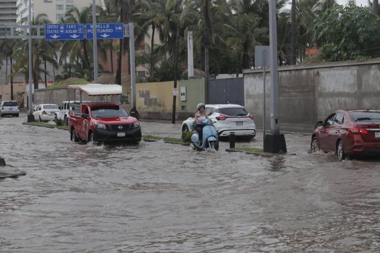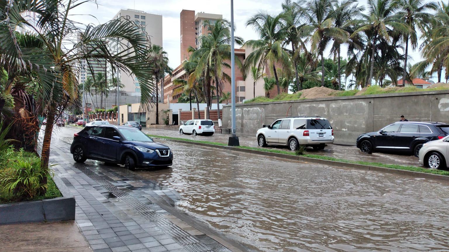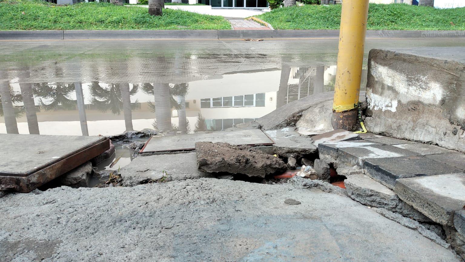 La Avenida Camarón Sábalo fue una de las vialidades con mayores afectaciones, incluso con daños en la banqueta.