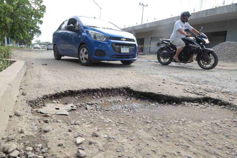 En un recorrido realizado por Noroeste durante el fin de semana, se pudo ver que debido a las lluvias, los baches y huecos en el asfalto ya habían formaron grandes charcos con grava y lodo. Mientras que el paso de camiones urbanos provocan que la calle siga dañándose por el peso de estos; lo cual puede generar algún accidente en el futuro.