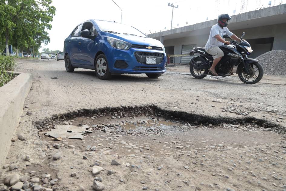MAZATLÁN._ Debido al paso de transportes pesados, camiones y las lluvias, una parte de la avenida Manuel J. Clouthier, justo frente a la Universidad Politécnica de Sinaloa, se encuentra en un pésimo estado por los grandes baches, hoyos y terracería que brotaron en la zona.