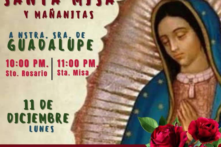 Desde este lunes 11 de diciembre inician las actividades con el rezo del Santo Rosario a las 22:00 horas, para que posteriormente el Obispo Mario Espinosa Contreras oficie una misa a las 23:00 horas, y después efectuar las tradicionales “Mañanitas”.