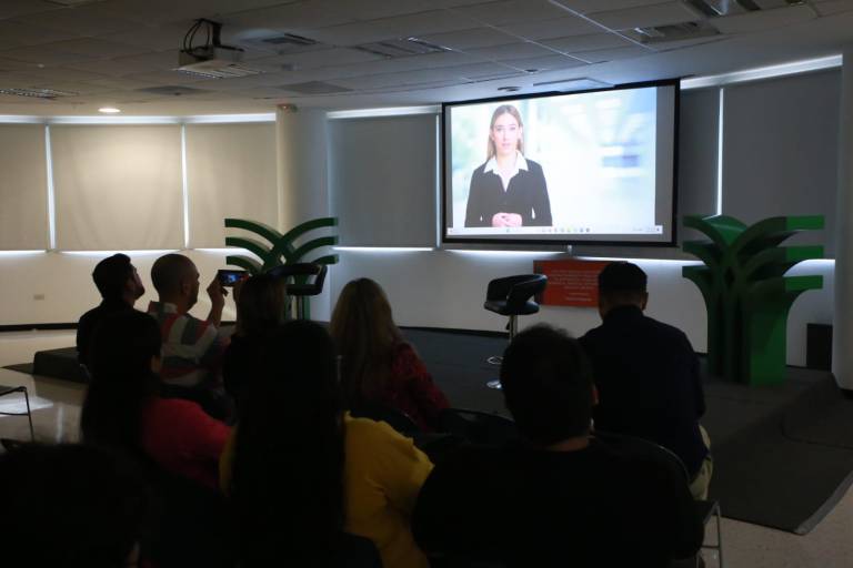 “Somos un empresa innovadora que cree en los recién graduados, también en la tecnología, en el desarrollo e impulsamos el desarrollo y todo lo que es referente a la innovación, y tenemos como herramienta, como ya lo vieron a Suba, que es una inteligencia artificial, pero también estamos implementando diferentes recursos ecológicos, y como prueba de ello, quiero mencionar que parte de este discurso fue creado por uno de ellos”, apuntó.