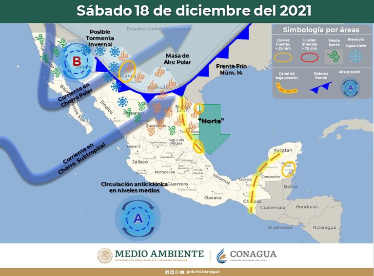 Explicó que llegará una masa polar durante este fin de semana por el norte del país, las cuales terminan dejando lluvias o las primeras nevadas en la sierra del noroeste de México.