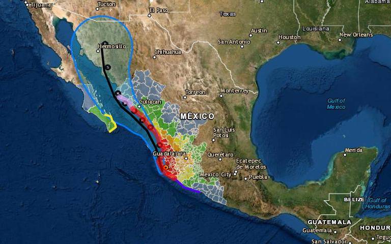 Pronosticó que para las 13:00 horas de este domingo el huracán de categoría 1 se encontrará a 45 kilómetros al suroeste de Mazatlán, Sinaloa, y a la 1:00 horas del lunes 30 estará a 105 kilómetros al oeste-noroeste de Mazatlán, Sinaloa.