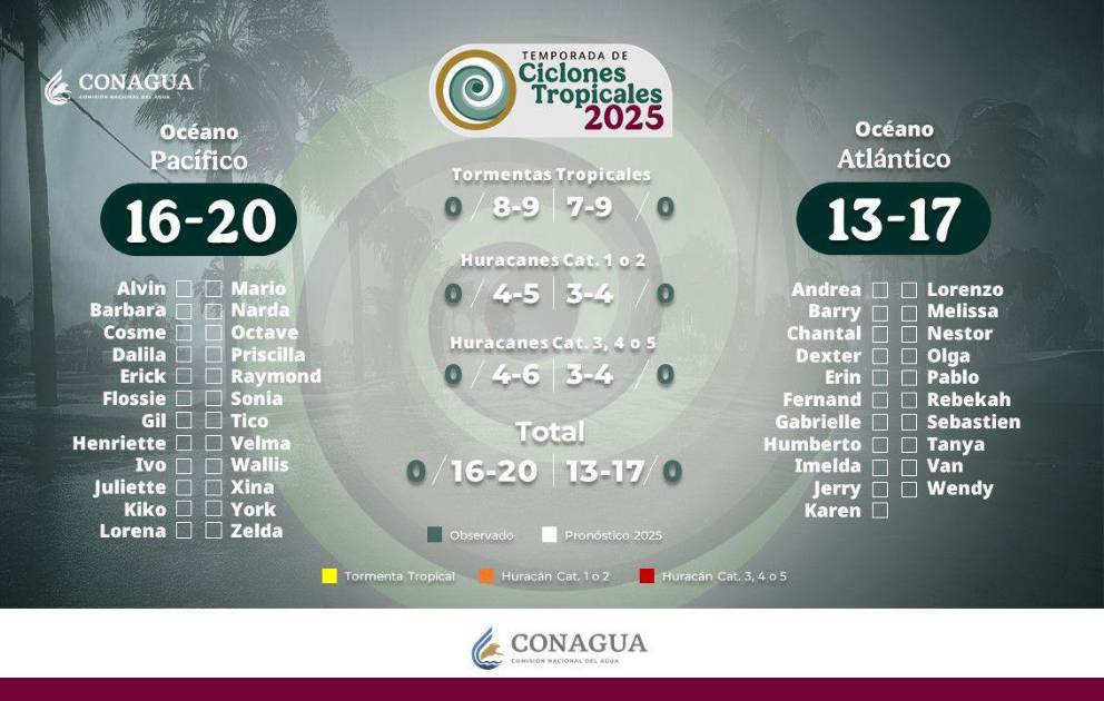 En contraste, el meteorólogo comentó que para el Océano Atlántico se tiene pronosticada una temporada menos activa que en el Pacífico, con un estimado de entre 13 y 17 sistemas ciclónicos.