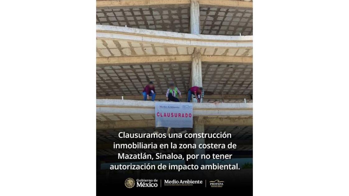 La Procuraduría Federal de Protección al Ambiente informó que impuso la clausura total temporal a un desarrollo de torre de condominios en proceso de edificación dentro de una superficie aproximada de 3 mil 292 metros cuadrados, colindante con el humedal conocido como “Estero La Marina”, el cual tiene conexión directa con el mar.