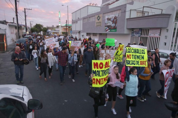 Decenas de personas iniciaron la manifestación a las afueras de donde se construyen las caballerizas, en Alemán y Serdán, en el Centro, donde exigieron dar marcha atrás a este proyecto impulsado por la iniciativa privada.