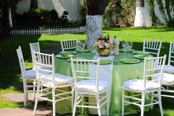 Montaje de lujo, mantelería y mobiliario.