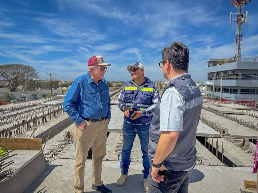 MAZATLÁN._ Sin previo aviso en sus agendas de trabajo y de forma privada, el Gobernador de Sinaloa, Rubén Rocha Moya; la Alcaldesa de Mazatlán, Estrella Palacios Domínguez; y el secretario General de Gobierno, Feliciano Castro, realizaron otra visita sorpresa y en privado para supervisar los trabajos de construcción del paso superior vehicular del Libramiento Luis Donaldo Colosio en el cruce con la Avenida Juan Pablo II, aquí en Mazatlán.