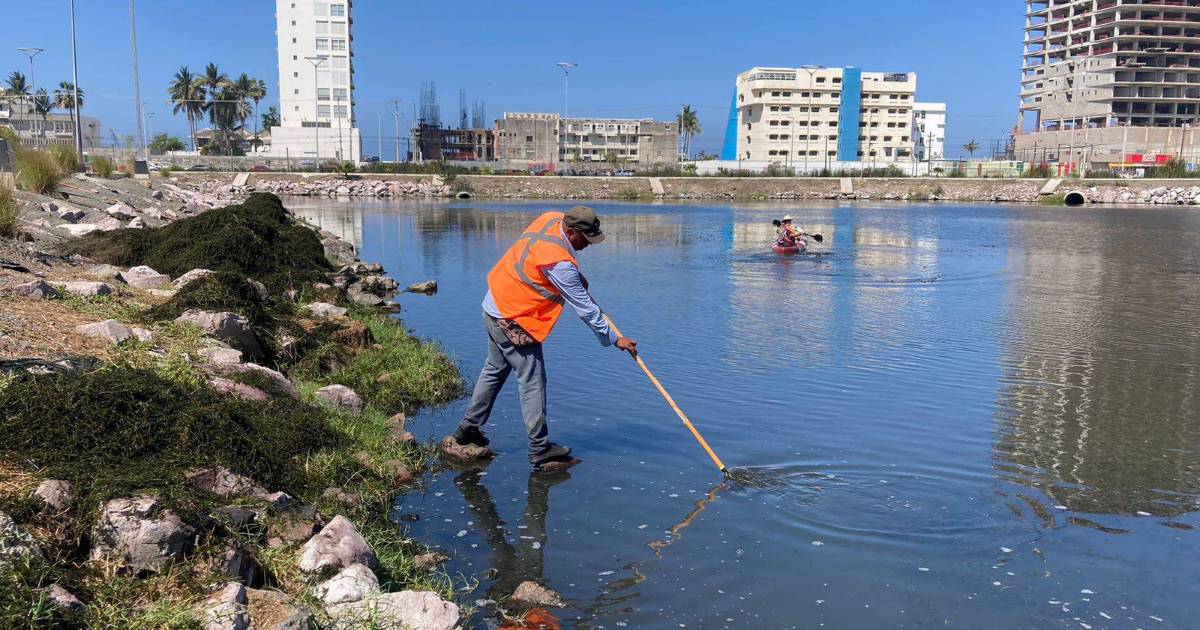Realizan bardeado de Parque Central y retiran sargazo de la Laguna del Camarón