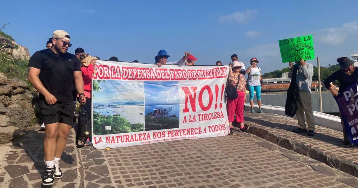 Realizan colectivos nueva manifestación pacífica en el Faro de Mazatlán contra la tirolesa