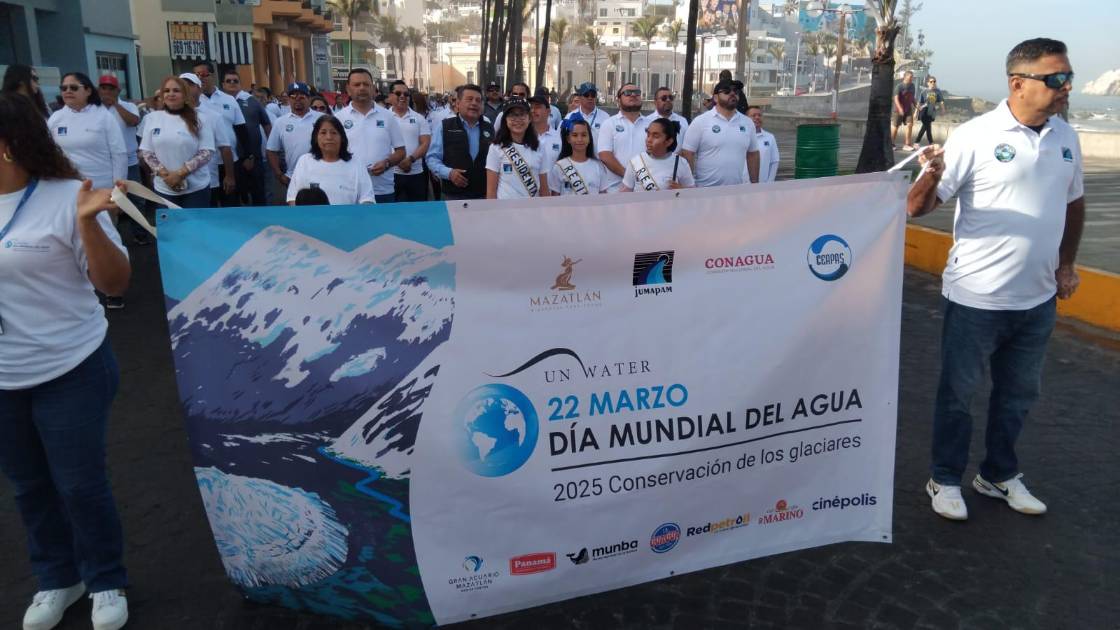 Fueron aproximadamente 500 estudiantes de más de 15 escuelas, principalmente primarias, así como personal de la Junta Municipal del Agua Potable y Alcantarillado de Mazatlán quienes poco después de las 8:00 horas iniciaron un desfile en el Escudo de Sinaloa hacia el norte por el Paseo Olas Altas hasta tomar la calle Ángel Flores al oriente.