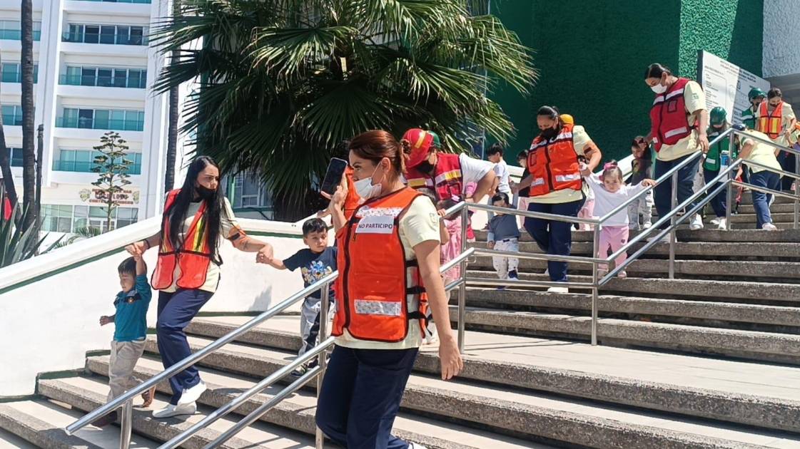 La actividad tuvo como epicentro la Guardería infantil del Seguro viejo, donde tras sonar la alerta sísmica a las 11:00 horas, se dio inicio con la evacuación a los pequeñitos de forma ordenada por parte de los trabajadores del lugar, quienes sacaron a los niños tomados de la mano y con una canción para que no se pusieran nerviosos.