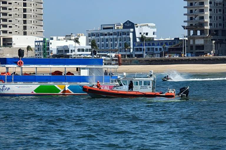 Durante el evento, la Estación Naval de Búsqueda, Rescate y Vigilancia Marítima Mazatlán desplegó dos embarcaciones tipo Defender, dos motos acuáticas y un helicóptero.