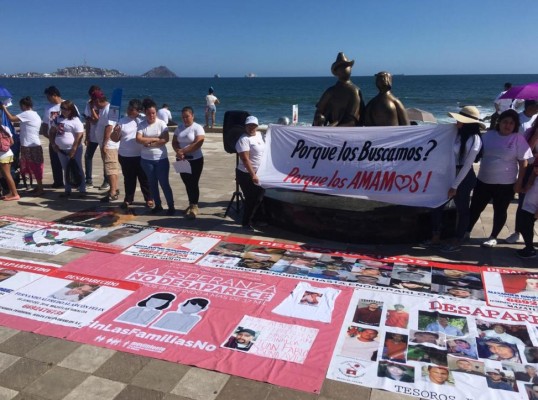 Al grito de "Por qué los buscamos?, Por qué los amamos" e "Hijo, escucha, seguimos en la lucha" se realiza la manifestación a pocos metros de las letras de Mazatlán.