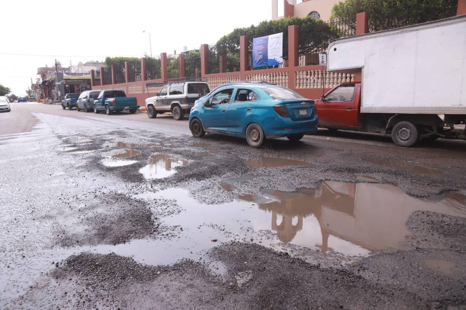 Reaparecen los baches en esquina del mercado de la Juárez, en Mazatlán