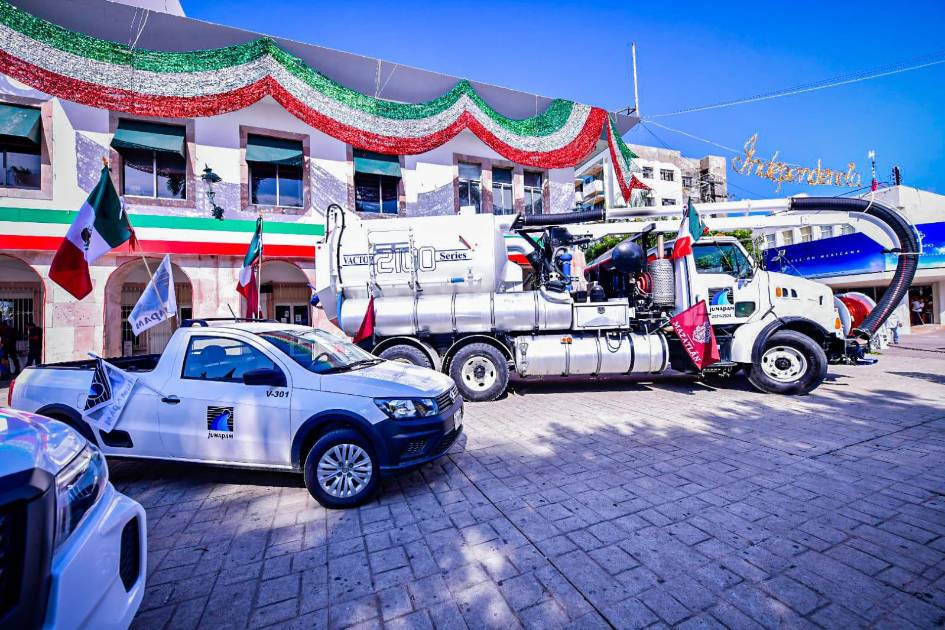 Con una inversión de más de 4.1 millones de pesos, el Gobierno de Mazatlán hizo entrega de tres nuevos vehículos a Jumapam, entre ellos un camión tipo sewer y dos camionetas.