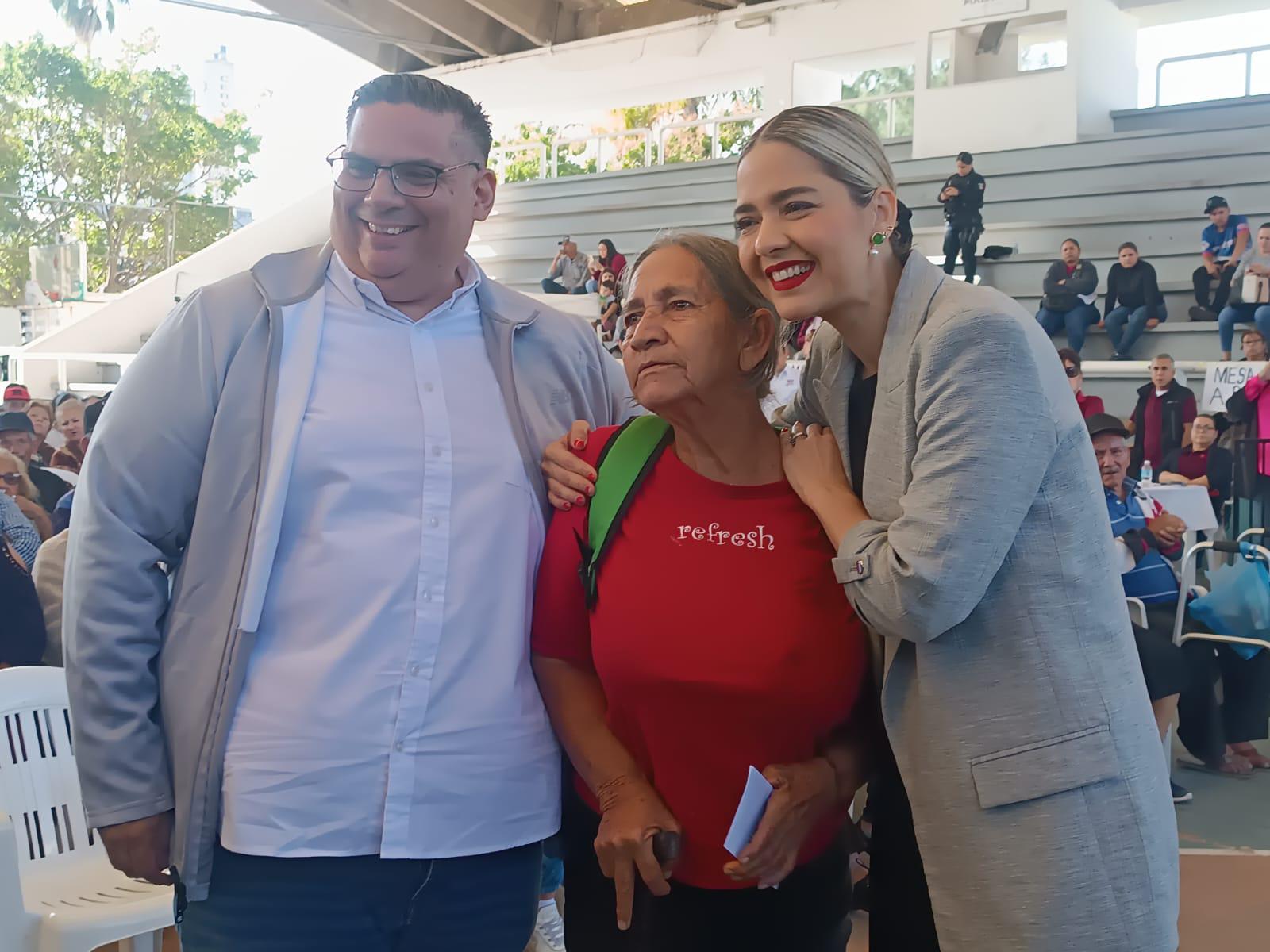 Junto a la Alcaldesa, José Luis Nuñez del DIF, llevó a cabo la entrega simbólica de los pagos Proapam a tres representantes de los Adultos Mayores: la señora Magdalena Alvarado, la señora Socorro del Carmen Juárez y el señor Jorge Alberto Piñón.
