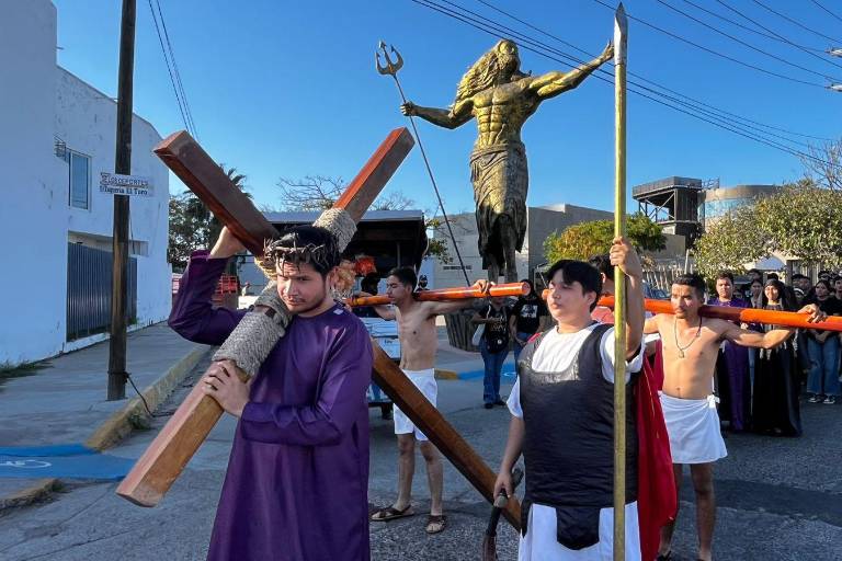 MAZATLÁN._ Con un mensaje de fe, reflexión y sentido comunitario, jóvenes realizaron una procesión religiosa en el malecón de Mazatlán como antesala a la celebración de Semana Santa y Pascua, representando los momentos más importantes de la pasión, muerte y resurrección de Jesucristo.