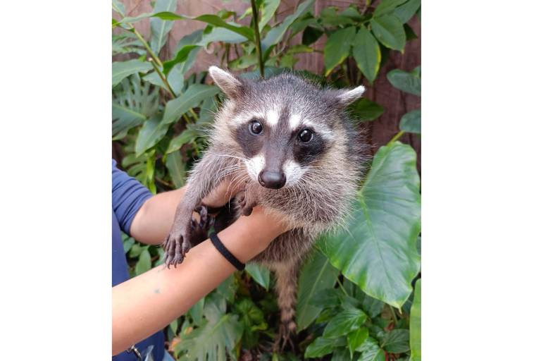 La gerente de veterinaria, Ángela López López, explicó que el mapache llegó con aproximadamente semana y media de edad, dependiendo totalmente de la leche. “Ahorita ya empezamos la transición a sólidos, tiene cuatro comidas al día: una de leche, dos de sólidos y la última nuevamente de leche”, detalló López López.