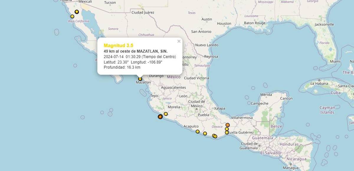 Un sismo de magnitud 3.5 se registró la madrugada de este domingo a 49 kilómetros al oeste de Mazatlán.