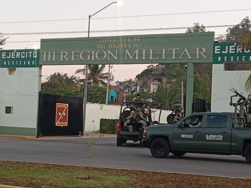 Este domingo, de las instalaciones militares entran y salen vehículos y elementos del Ejército y Guardia Nacional, incluso con algunas ambulancias.