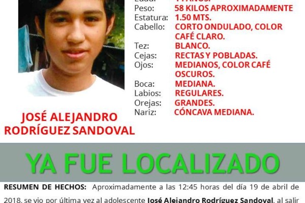 "El adolescente de 14 años ya está con sus familiares sano y salvo, se confirma"