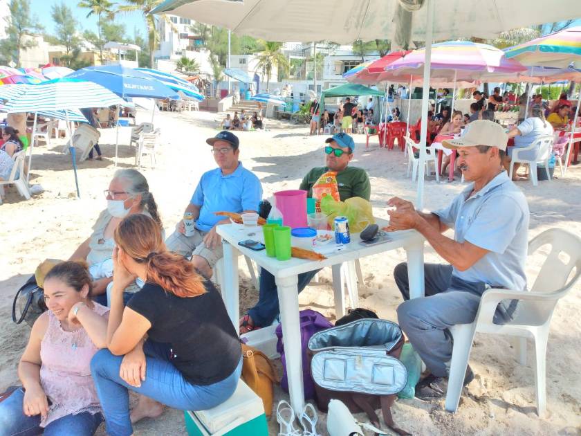Señaló que en esa playa se ve tranquilo, por eso ahí están a gusto y aunque ninguna autoridad les había dado alguna recomendación para prevenir contagios del Covid-19 ellos se cuidan y están al pendiente de los niños que se meten a bañar al mar.