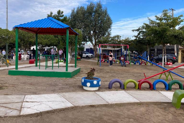 A través del programa “¡Qué Bonito Mazatlán!”, esta obra consistió en la instalación de un paquete de cuatro juegos infantiles, como columpios, dos sube y baja, una resbaladilla y un pasamanos, con una inversión de 55 mil pesos.
