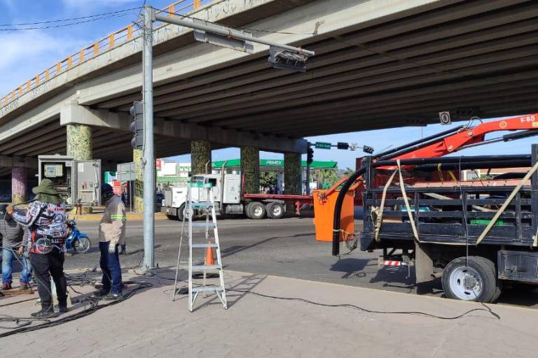 Reinstalan semáforo derribado bajo el puente vial al sur de Mazatlán