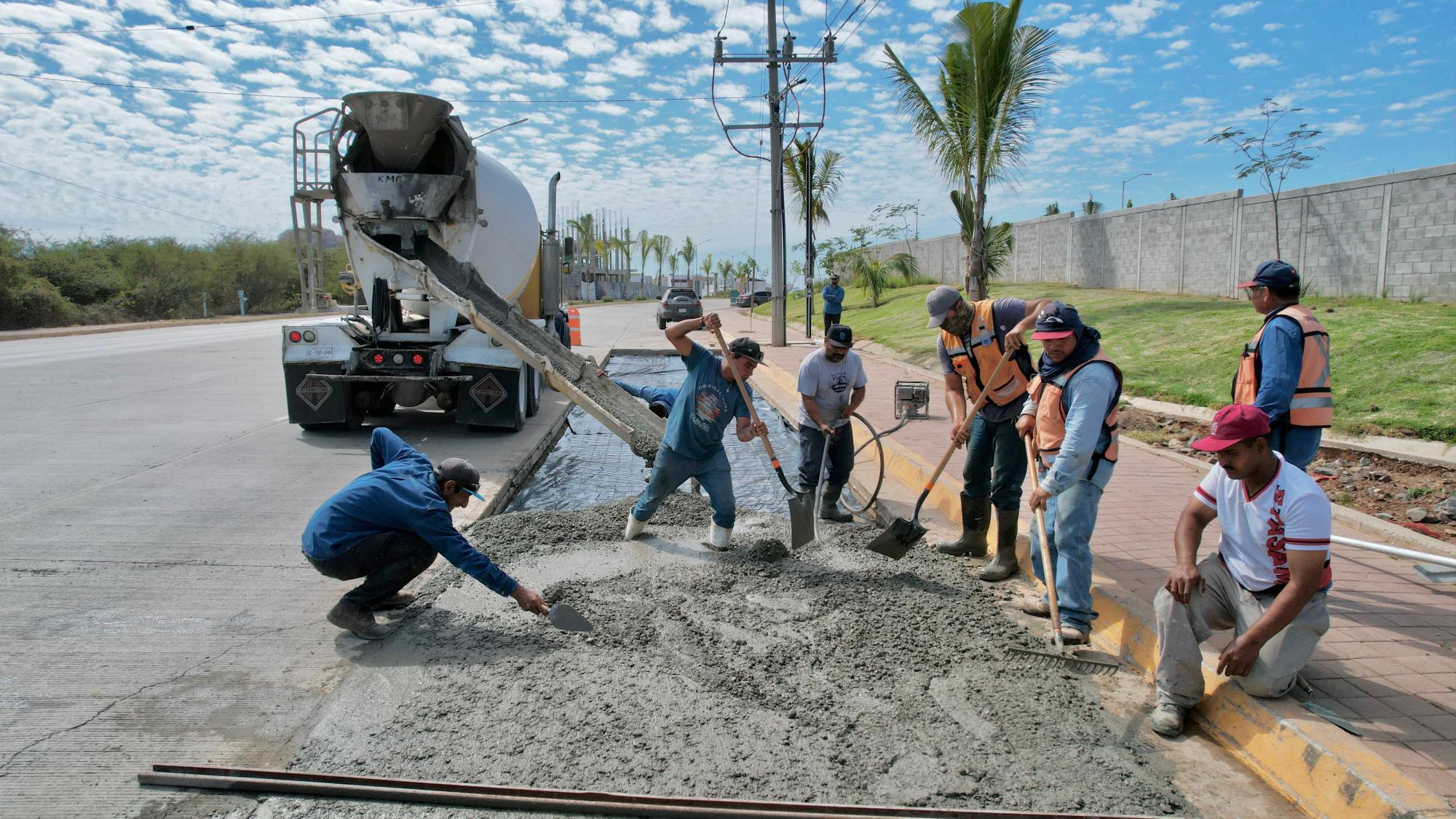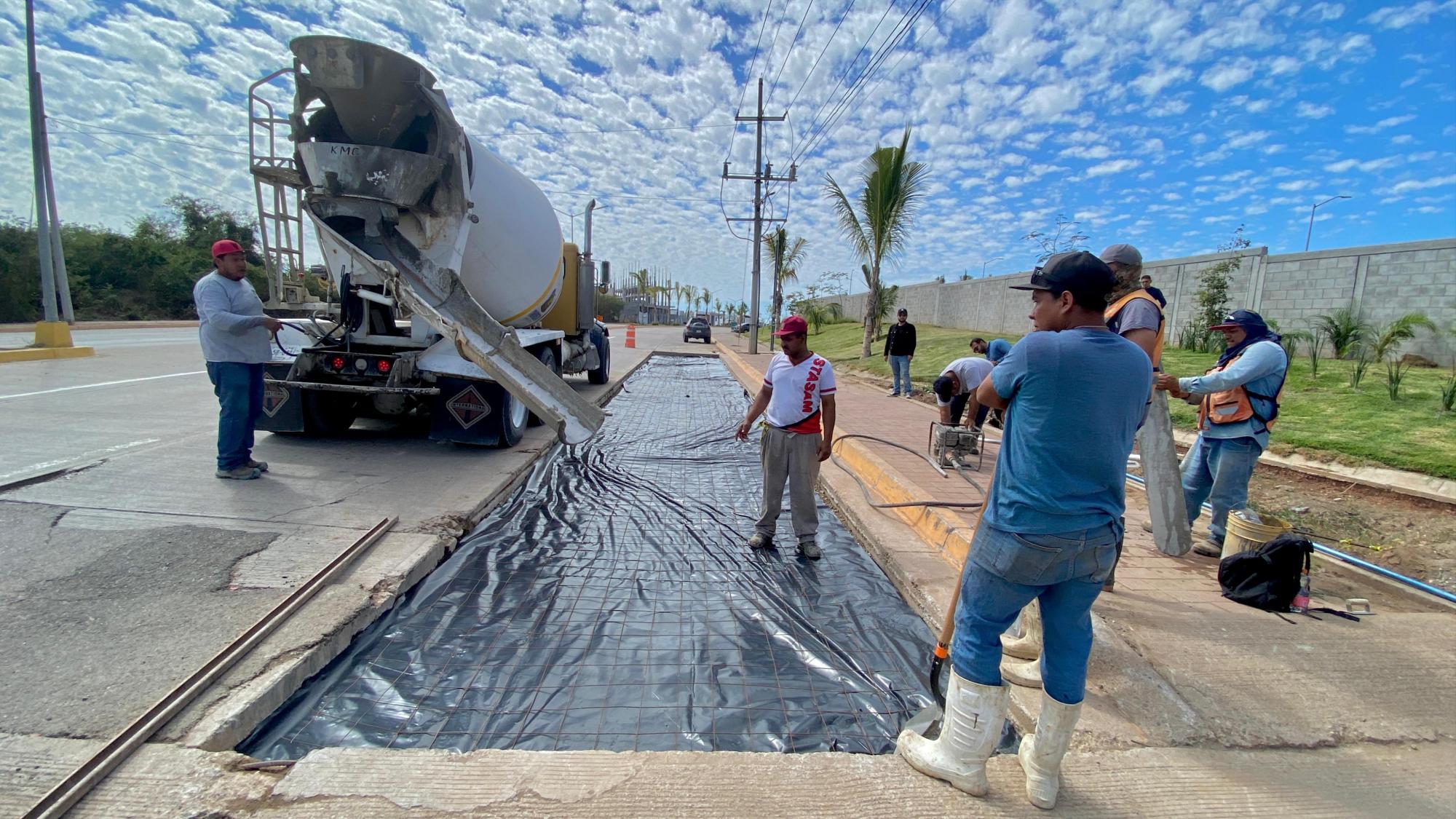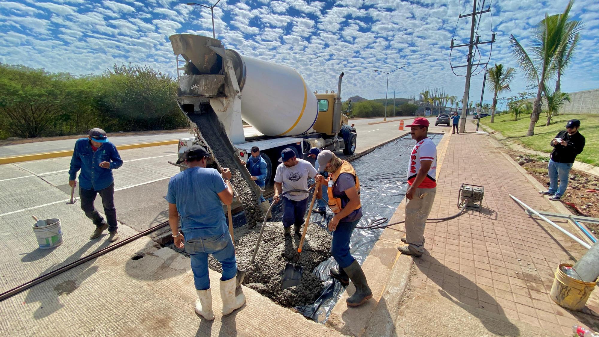 De acuerdo a un comunicado, este viernes, el personal se trasladó a la Avenida Peche Rice para realizar las labores de colado en la reposición de losas de concreto de esta importante vía.