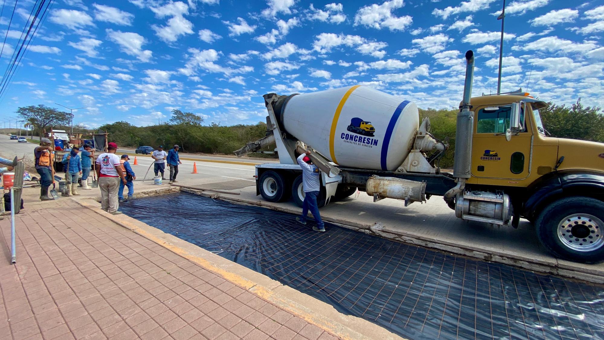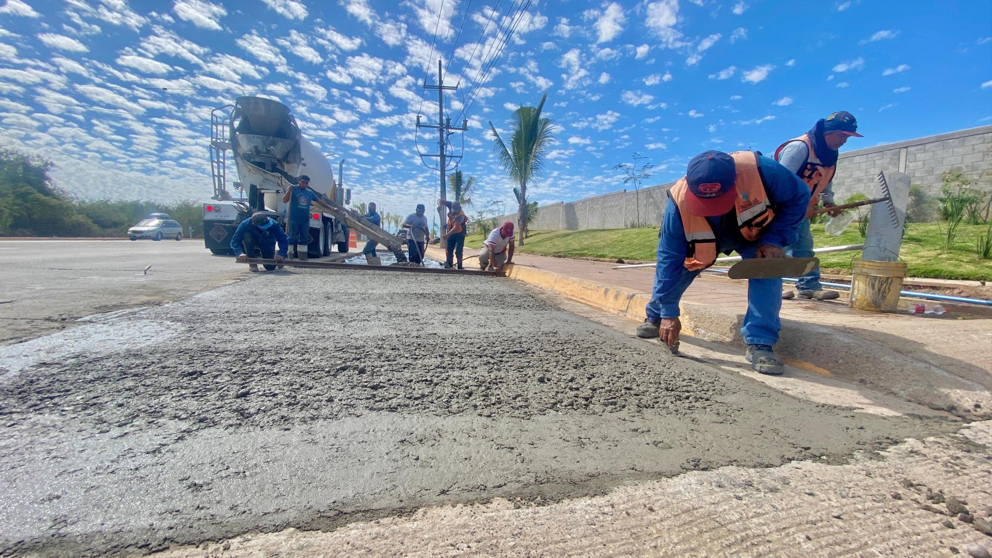 Repone Obras Públicas losas de concreto dañadas en la Avenida Peche Rice