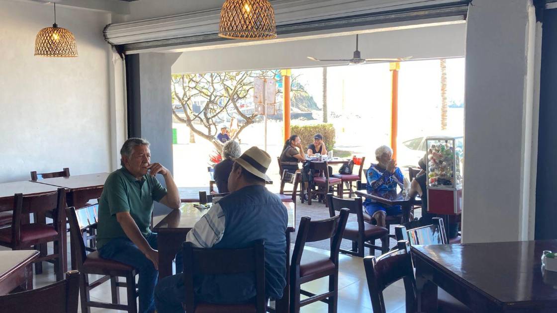“El fin de semana está llenísimo, es impresionante de verdad, que si te vienes un lunes ves gente, o sea, sus bolitas o muchachos que vienen a los restaurantes de aquí, se cruzan a la playa, es una zona muy muy llena de vida en este periodo, en este tiempo, porque si hubo un tiempo que estuvo muy olvidada, pero ahora sí, nos han levantado muchísimo y más también cosas como la mansión del pirata, el teatro que está hermoso, con las clases y todo esto, hay mucho que hacer alrededor. Acá de este lado por la zona de Olas Altas está lo que es el Sinaloense con música en vivo de bandas, gente que le gusta comer con bandas puede ir sin problema, hay muchos localitos que nos han levantado mucho esta zona”.