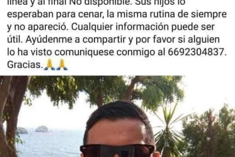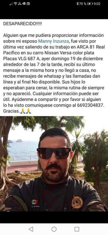 Familiares de Manny Inzunza reportaron vía redes sociales su desaparición desde este domingo por la tarde-noche.