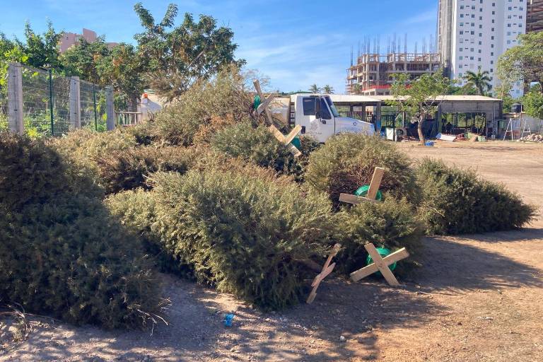 En un recorrido realizado por Noroeste la mañana de este viernes, se pudo ver cómo la base de Parques y Jardines, ubicada en la avenida Leonismo Internacional, ha recibido ya varios pinos navideños en el sitio, los cuales se encuentran apilados a la espera de ser retirados y después colocados en un espacio del Parque Central.