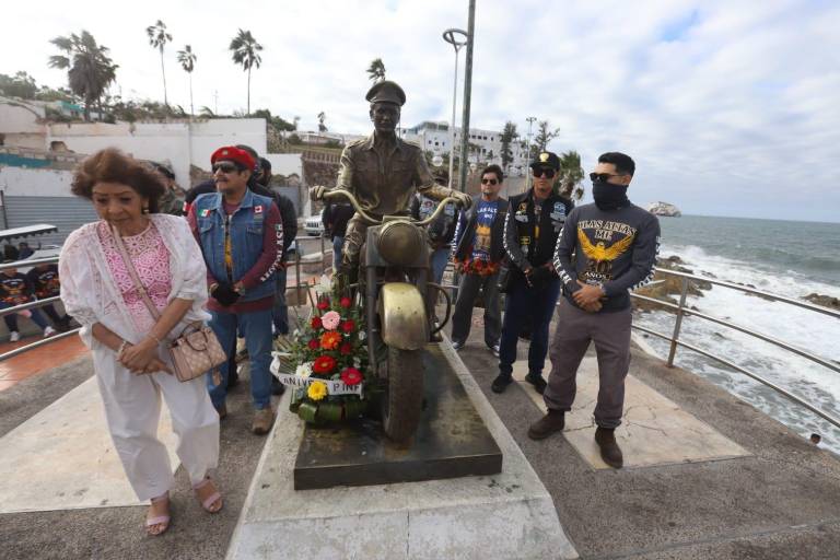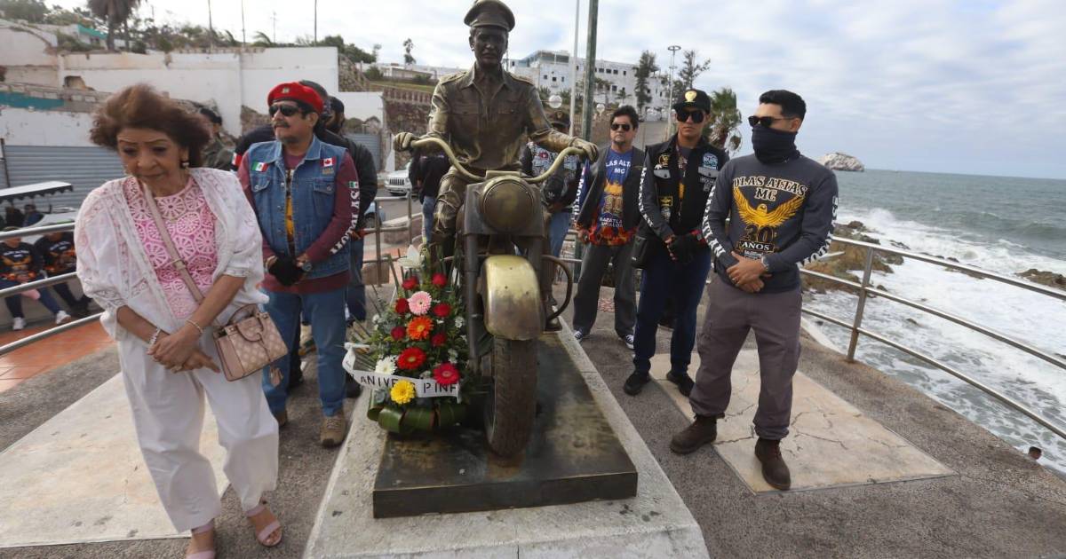 Decenas de motociclistas y admiradores de Pedro Infante se reunieron para rendirle homenaje al realizar una guardia de honor en la estatua de bronce ubicada en el Paseo Olas Altas.