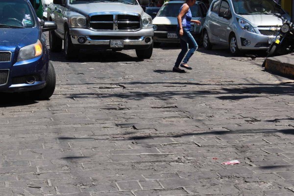 Sobre la calle Leandro Valle, las alcantarillas por donde se escurre el agua se encuentran obstruidas por vehículos y tapadas por la basura. Los baches, uno tras otro, hacen que se transite despacio; y las carretas dejan sus bolsas de basura en la pasada de las aceras.