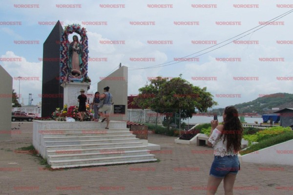 MAZATLÁN._ Rodeada de flores se encuentra la Virgen de La Puntilla, en estas vacaciones de verano.