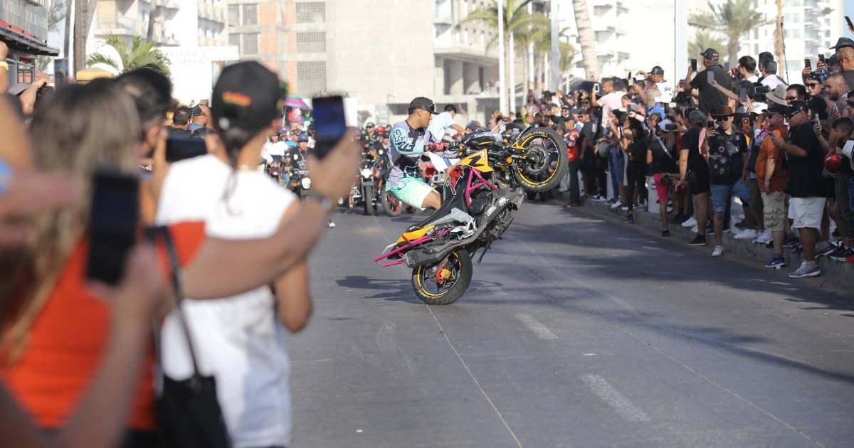 MAZATLÁN._ El paseo turístico de Mazatlán vibra la tarde de este sábado con el desfile de la Semana de la Moto 2024 en el que participan miles de motociclistas y espectadores nacionales y extranjeros.
