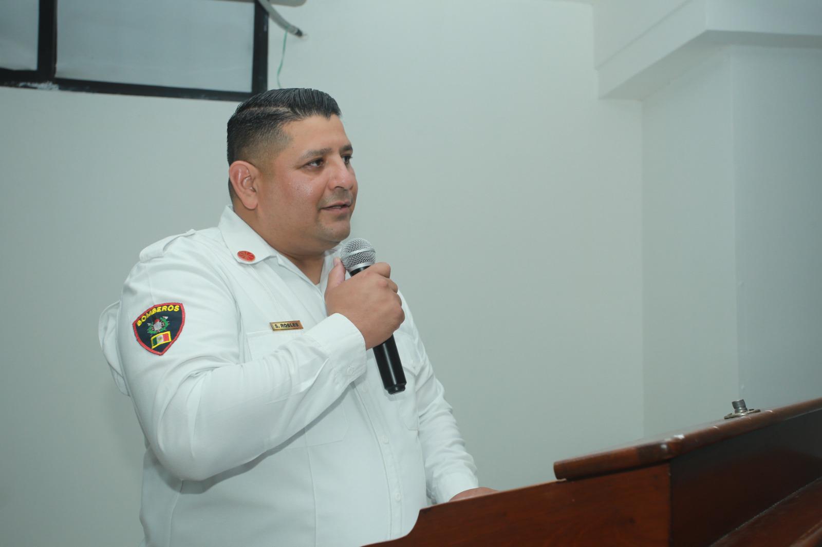 José Manuel Cruz Lizárraga, Comandante de la Estación de Bomberos de Villa Florida, recibe reconocimiento por 30 años de servicio.