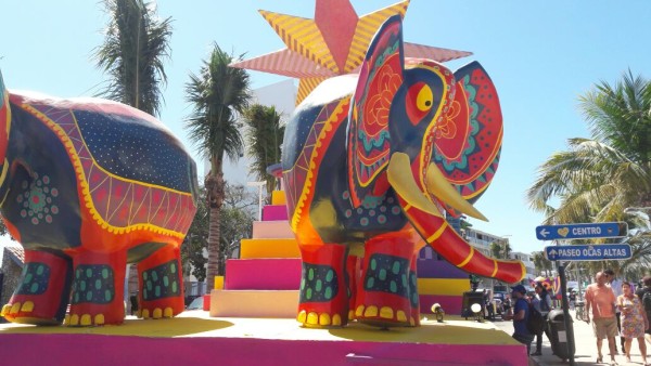 MAZATLÁN._ Llenos de brillos, colores, alebrijes y dragones, los 29 carros alegóricos hacen su arribo sobre Paseo Claussen horas previas del desfile del Carnaval de Mazatlán 2017.