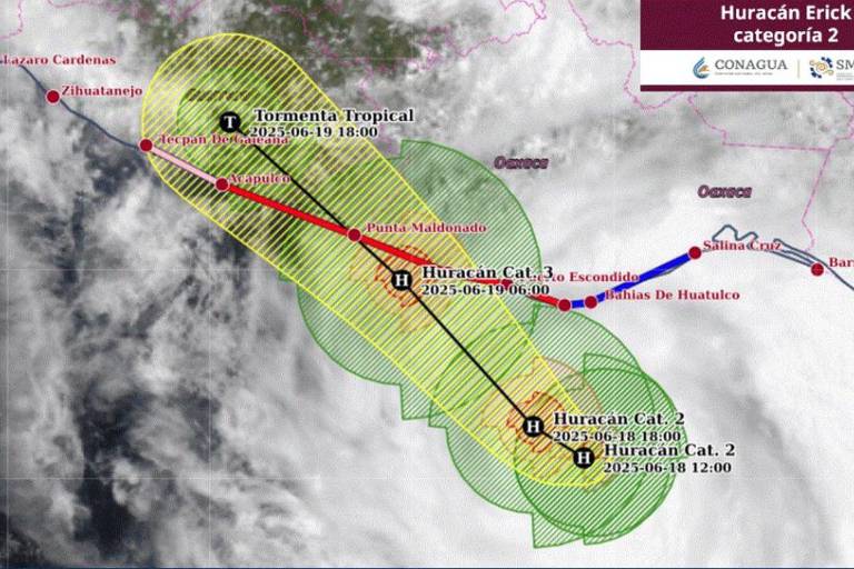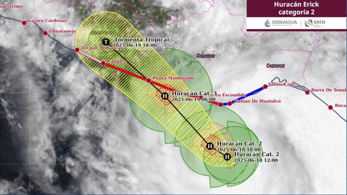 Lo que fue el huracán Érick que alcanzó la categoría 4 en la escala de Saffir-Simpson e impactó a Oaxaca durante las primeras horas de hoy, se debilitó la tarde de este jueves en tierra sobre el estado de Guerrero, de acuerdo con el Servicio Meteorológico Nacional de la Comisión Nacional del Agua.