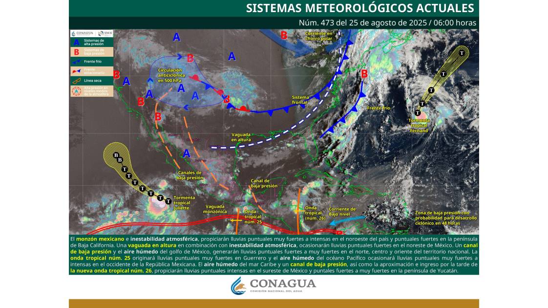 El SMN pronosticó que Juliette se degradará el viernes a baja presión y se encontrará a 775 kilómetros al oeste-suroeste de Punta Eugenia, BCS.