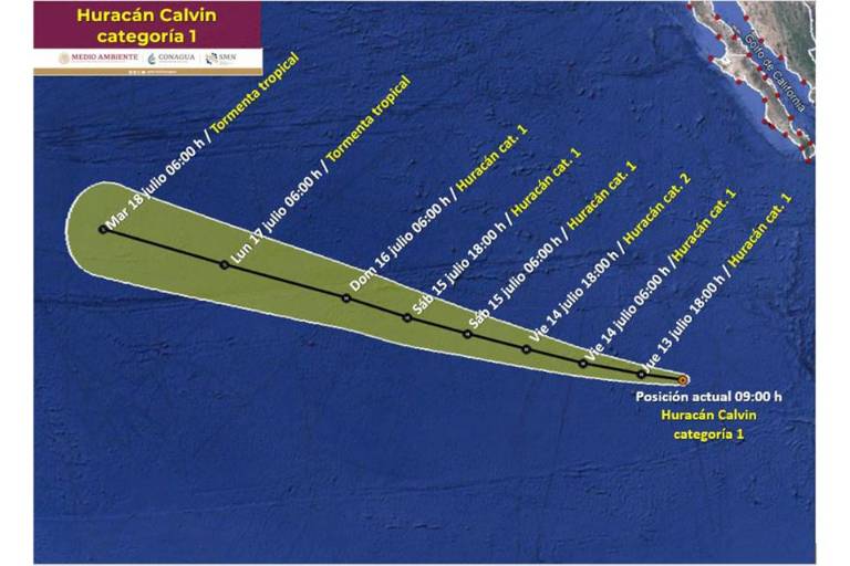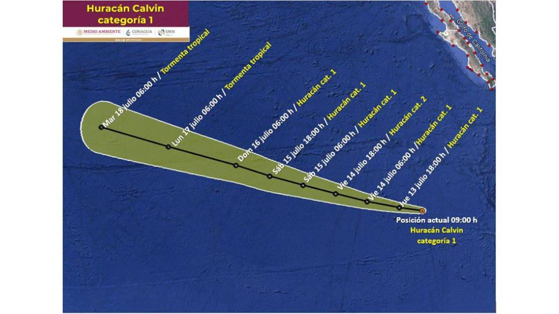 Lo que fue la tormenta tropical Calvin se intensificó esta mañana a huracán de categoría uno y continúa alejándose de las costas mexicanas, sin generar efectos en el territorio nacional, de acuerdo con el Servicio Meteorológico Nacional de la Comisión Nacional del Agua.
